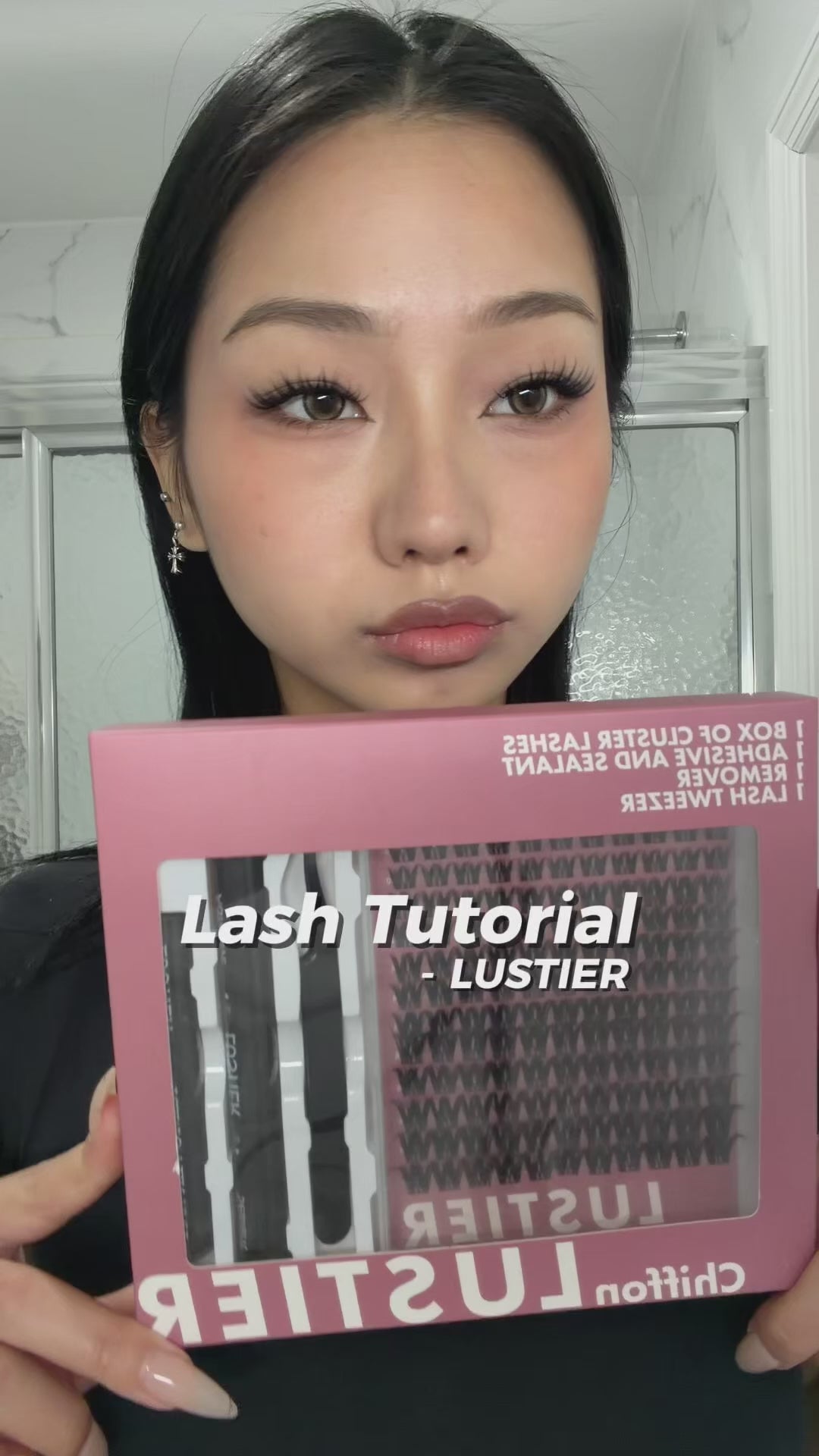 Gently apply the LUSTIER oil-based remover to the top and bottom of your lashes. Wait 1–3 minutes, then gently rinse with water or a facial cleanser to remove the cluster lashes.